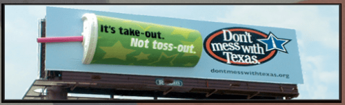 Of course, to really show my age, I find it rather ironic in the fact that the whole “DMWT” campaign initially relied on outdoor boards to deliver its message goes completely against another famous Texan’s efforts to beautify the nations roadways: Lady Bird Johnson. Her whole campaign to make driving a much more pleasant experience faced stiff opposition from none other than….you guessed it, the Outdoor Advertising Association of America.